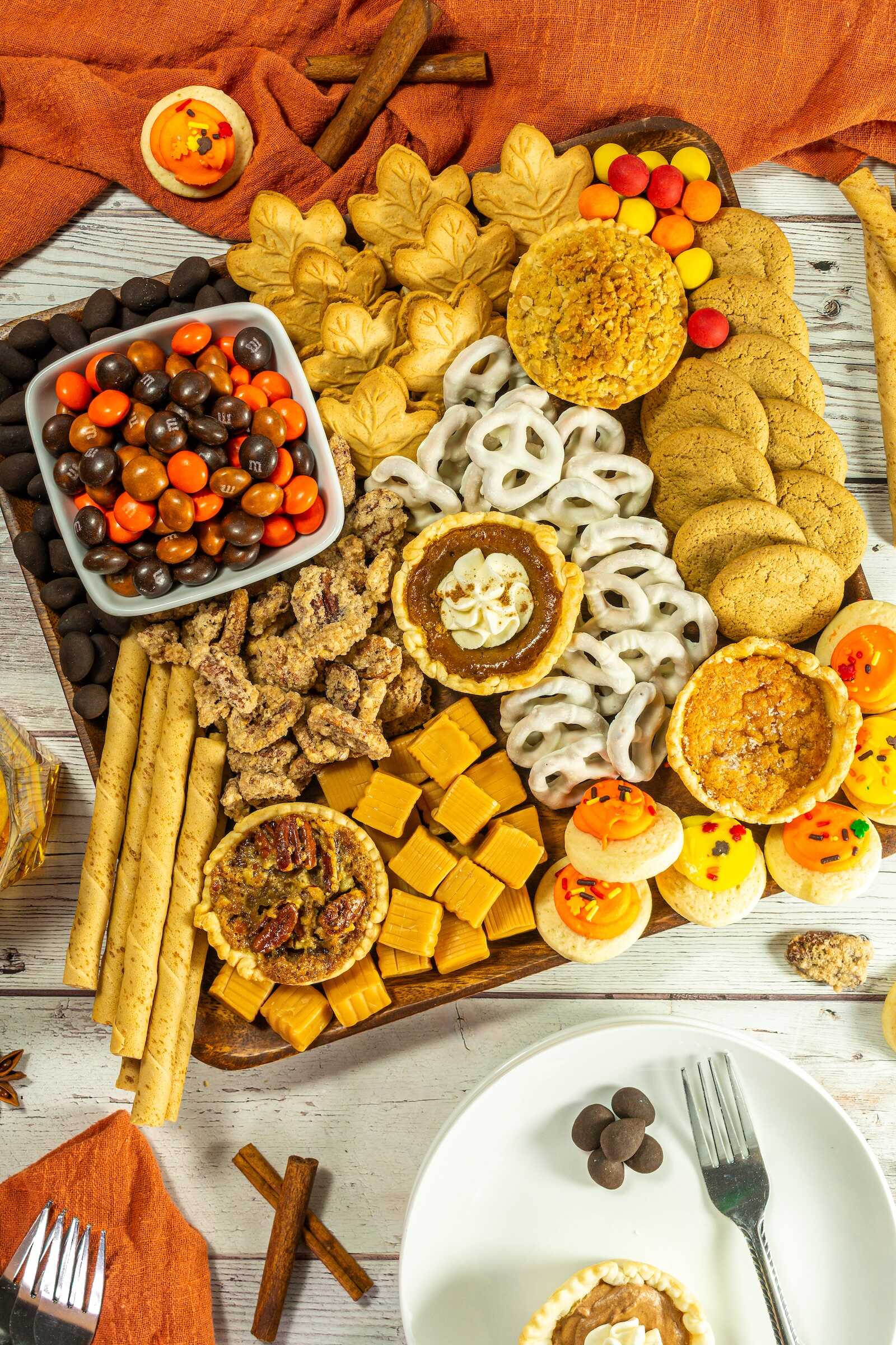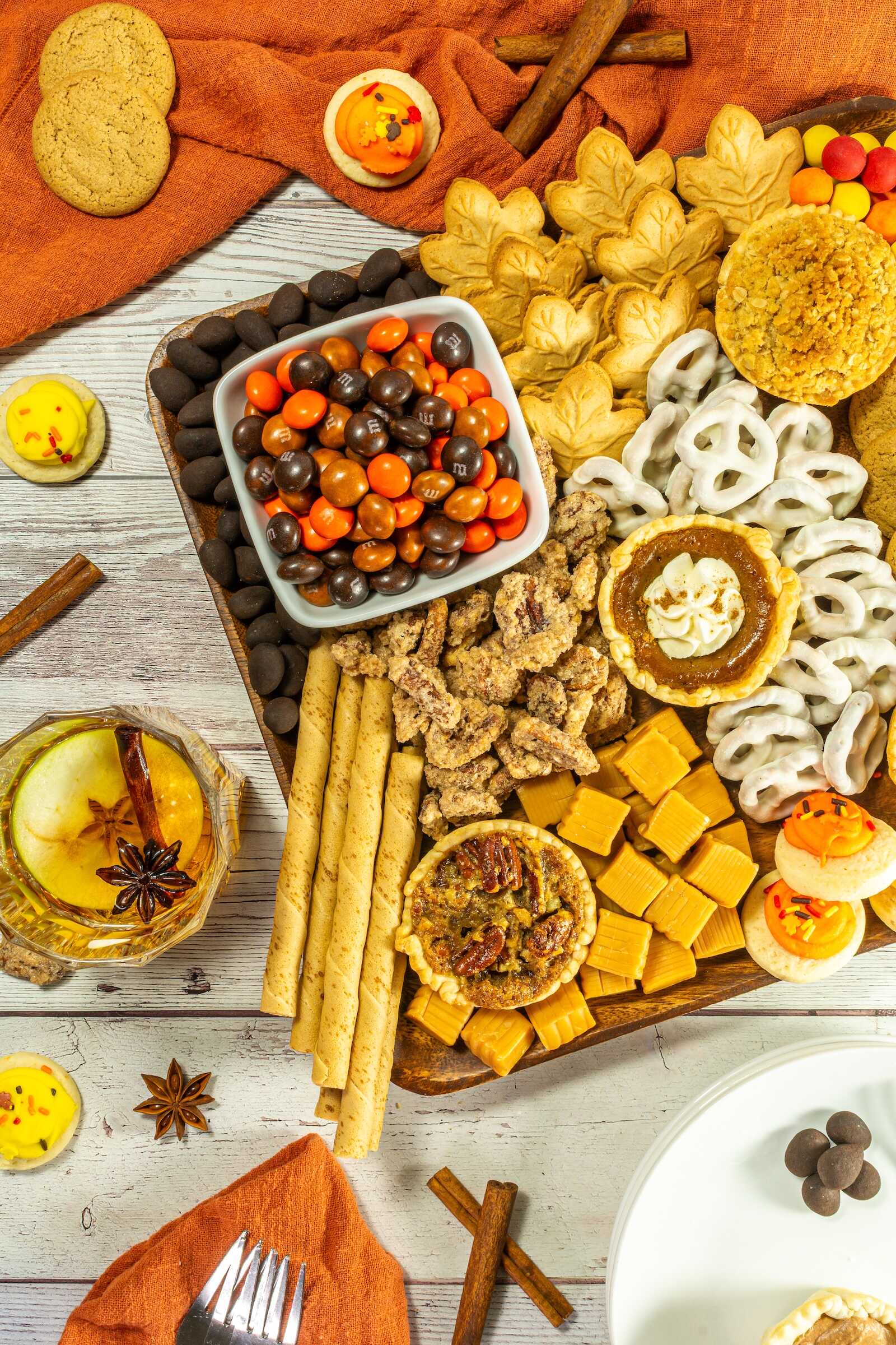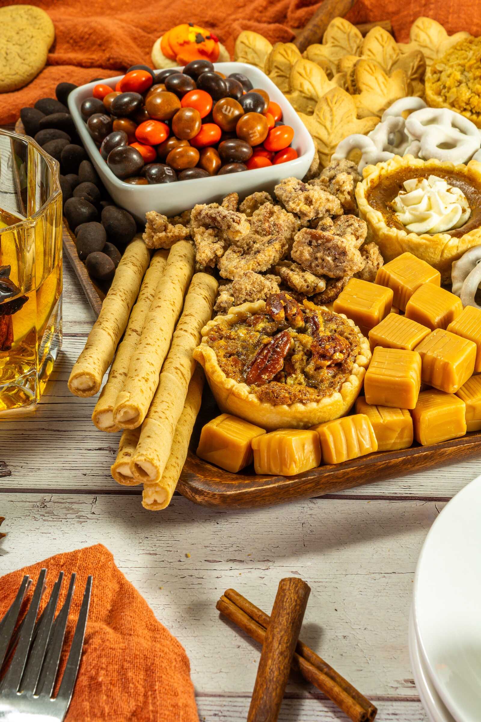Starting with your board’s layout helps you establish flow. Think of your dessert board like a cozy fall tablescape—your foundation sets the tone.