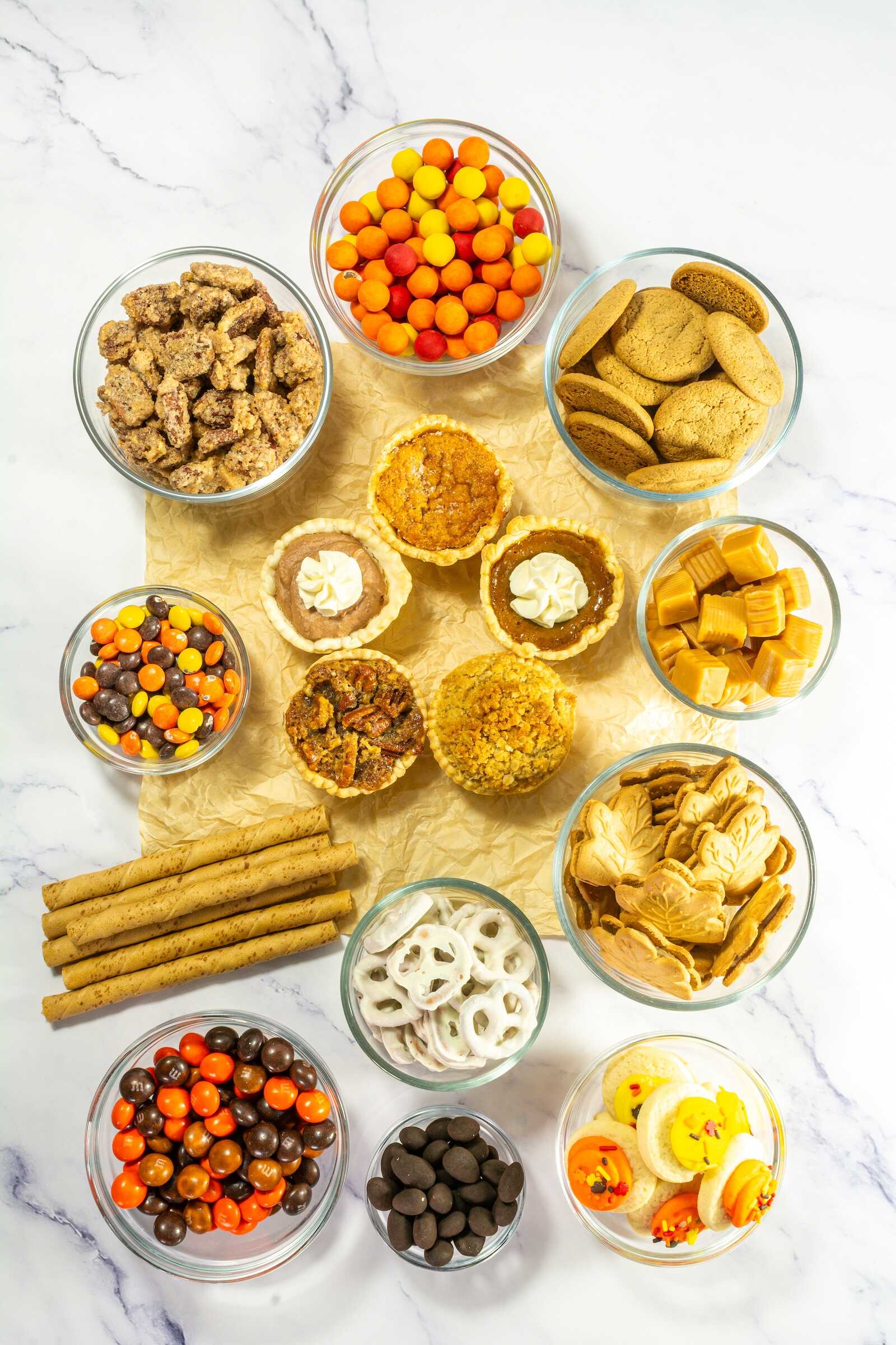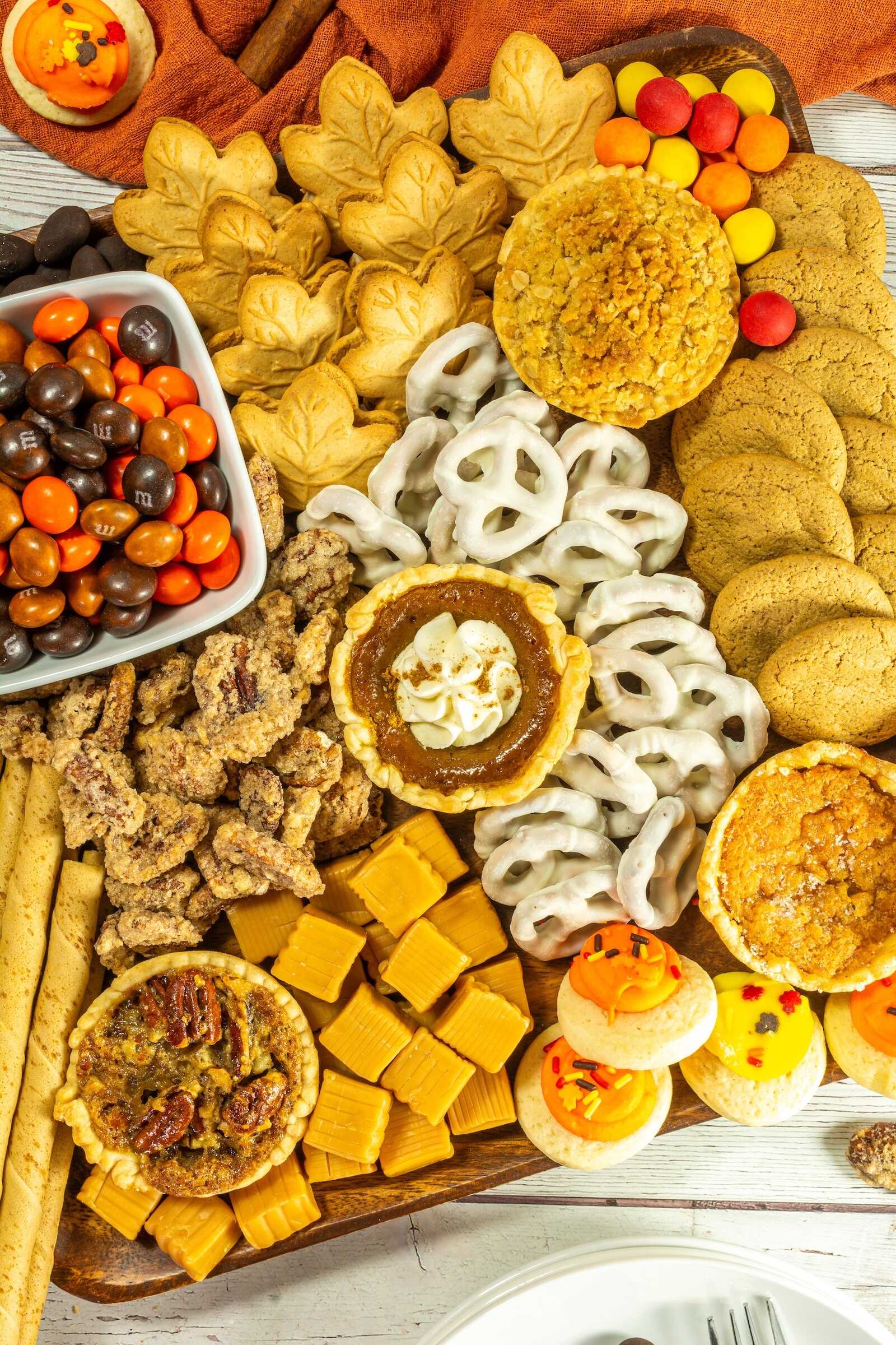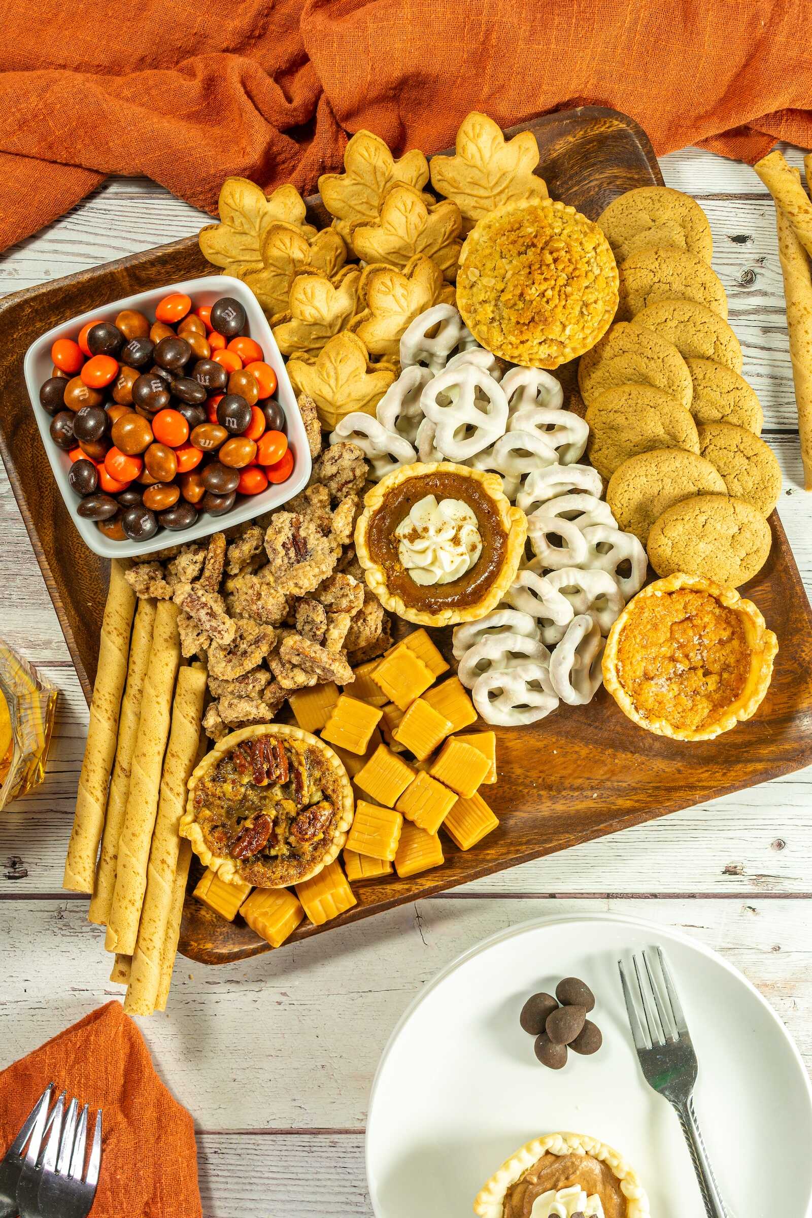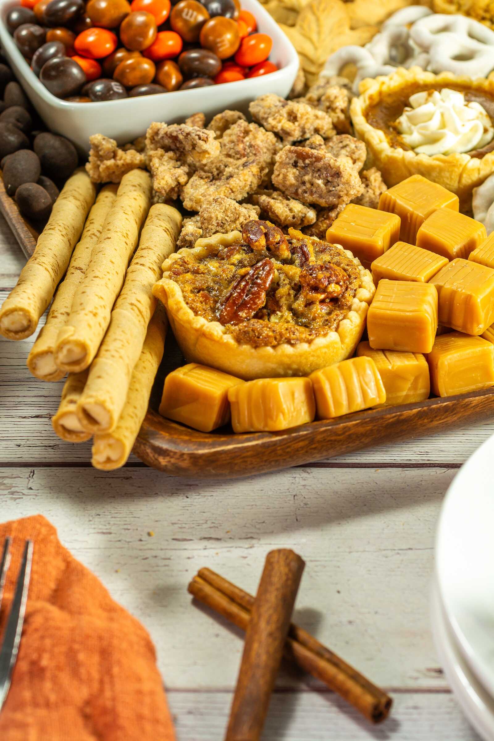Starting with your board’s layout helps you establish flow. Think of your dessert board like a cozy fall tablescape—your foundation sets the tone.